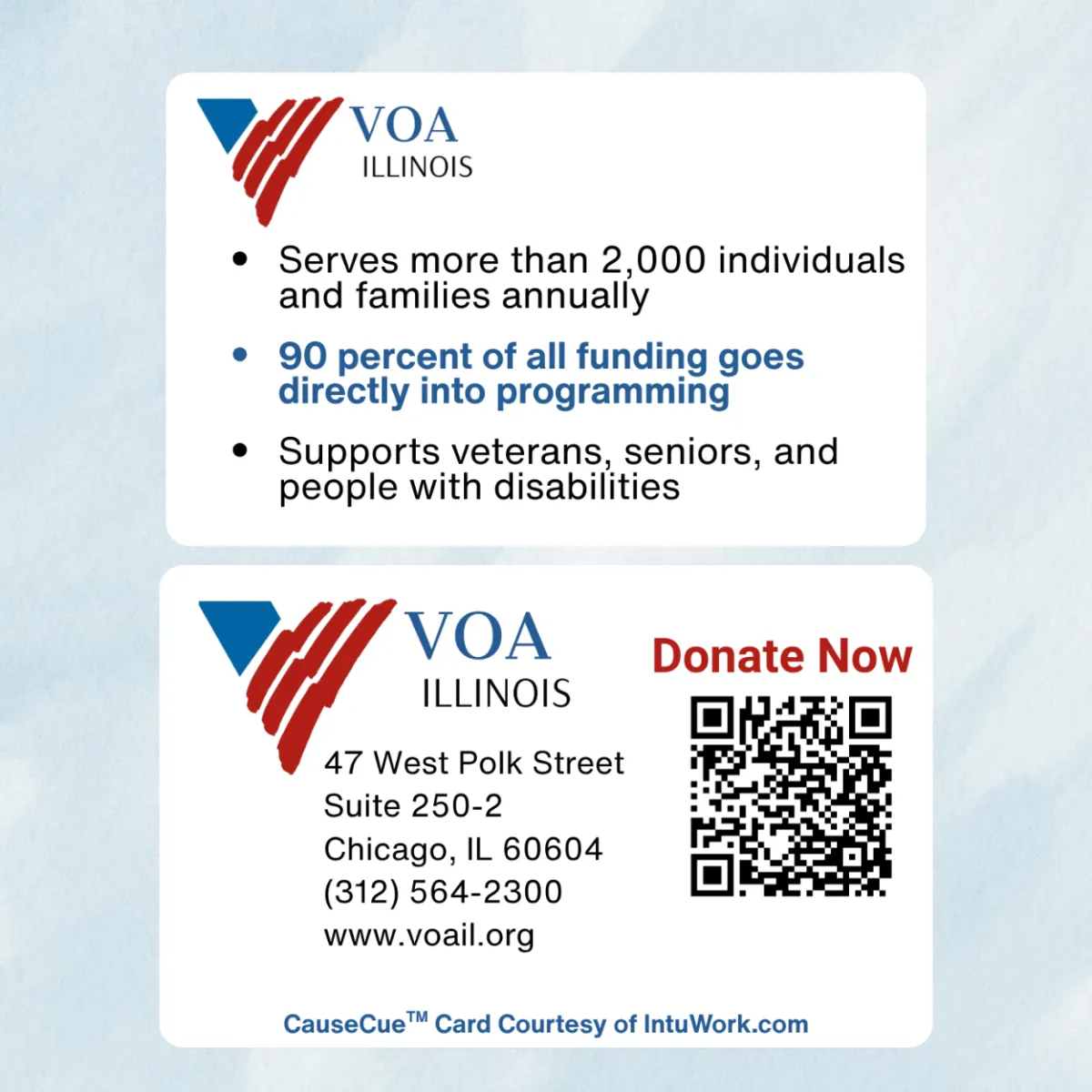 Your package includes ten plastic, wallet-sized CauseCue™ cards.